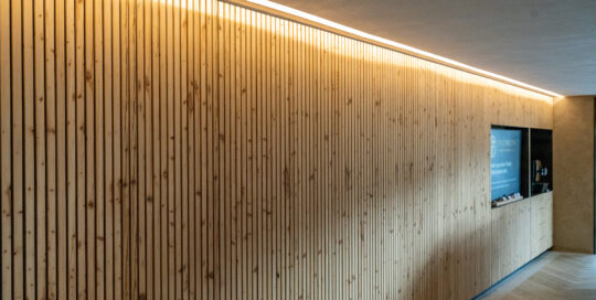 MartinKriner2022-08-01T20:04:33+02:00Die Schrankfront verleiht dem Raum ein stilvolles Aussehen und verbessert die Akustik erheblich, somit wird so eine Lattenwand auch sehr oft als Schallschutz in größeren Räumen verbaut.