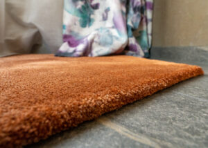 Optisch überzeugt FAME durch einen edel glänzenden Flor, der den Boden zu einem eleganten Highlight in jedem Wohnraum macht. Teppichboden, Getuftet, Velours. 17 Farbvarianten, Nutzschicht: 100% Polyamid Ausgestellte Farbe: 3660/552